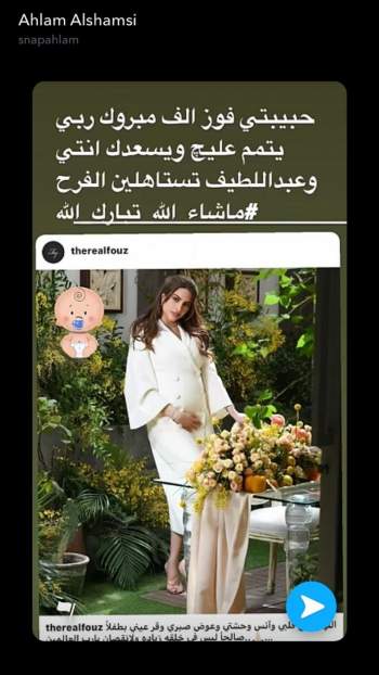 وأوضحت فوز الفهد أن كثير من الفتيات يشكون في حملها قائلة :فيه بنات مو مقتنعين أني حامل، وأشارت إلى أن شكل بطنها يتغير كثيراً خلال تلك الفترة وتلاحظ هذه التغيرات على مدار اليوم. خلال الأيام الماضة، أوضحت فوز الفهد أنها تصلها الكثير من الرسائل اليومية وأسئلة حول نوع الجنين وهل خضعت للكشف عن كونها حامل في فتاة أم صبي، مؤكدة على أنها وزوجها رجل الأعمال عبداللطيف. فوز الفهد أعلنت قبل قليل عن انجابها لمولودها الأول من زوجها من رجل الأعمال الكويتي عبداللطيف الصراف، وكتبت تدوينة عبر سناب شات معلنة فيه استقبال طفلها الذي. كشفت أخصائية التجميل، ومدونة الموضة والأزياء الكويتية، فوز الفهد، أنها حامل بطفلها الأول. فوز الفهد حامل؟ وقد أطلت فوز الفهد بفستان واسع خلال الفيديو الذي نشرته نورة العميري، كما أكدت على قوة العلاقة التي تربطها معًا.