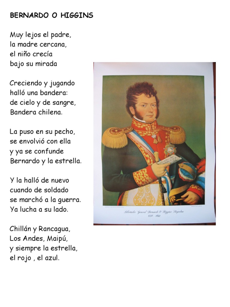 En büyük amacı, şili'de toprak reformu yaparak asalet unvanlarını kaldırmak ve ülkeyi tam anlamıyla demokratik bir yönetime kavuşturmaktı ohiggins. Bernardo ohiggins riquelme bernaro oxiins 17781842 was a chilean independence leader who freed chile from spanish rule in the chilean war of indepe.